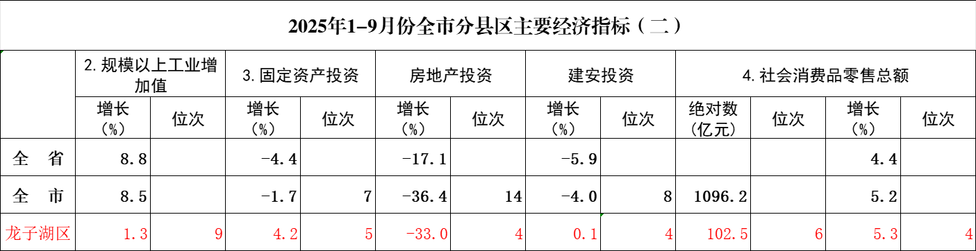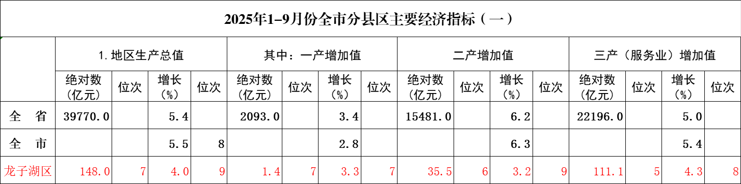 【经济指标】2025年1-9月龙子湖区主要经济指标