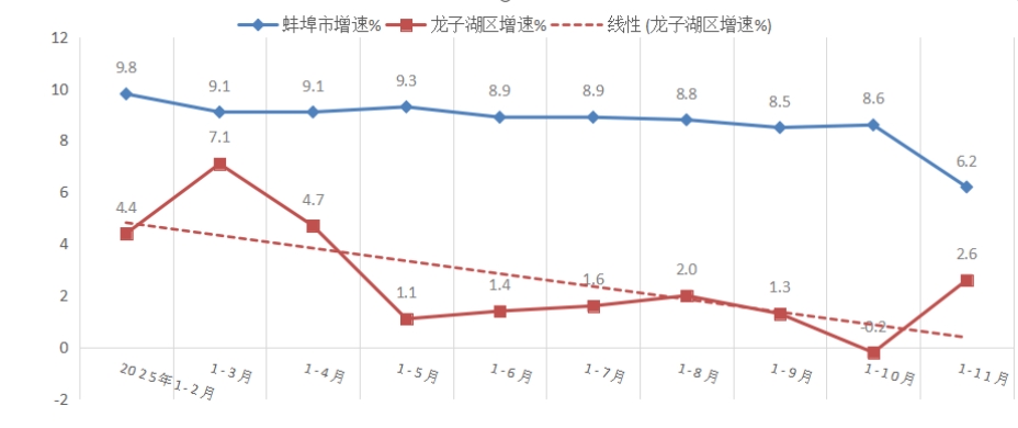 1-11月,规上工业增加值降低1.3%,低于全市平均增速9.9个百分点,居全市第9位;低于全省平均增速10.6个百分点;较上年同期降低3.9个百分点,位次后移2位。