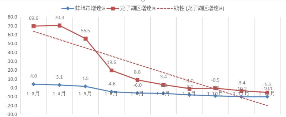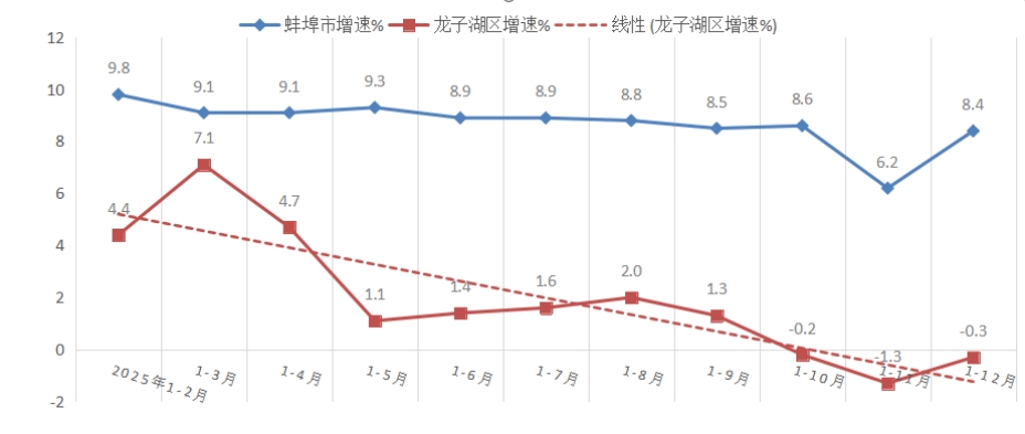 1-12月,规上工业增加值降低0.3%,低于全市平均增速8.7个百分点,居全市第9位;低于全省平均增速9.7个百分点;较上年同期下降2.1个百分点,后移2位。