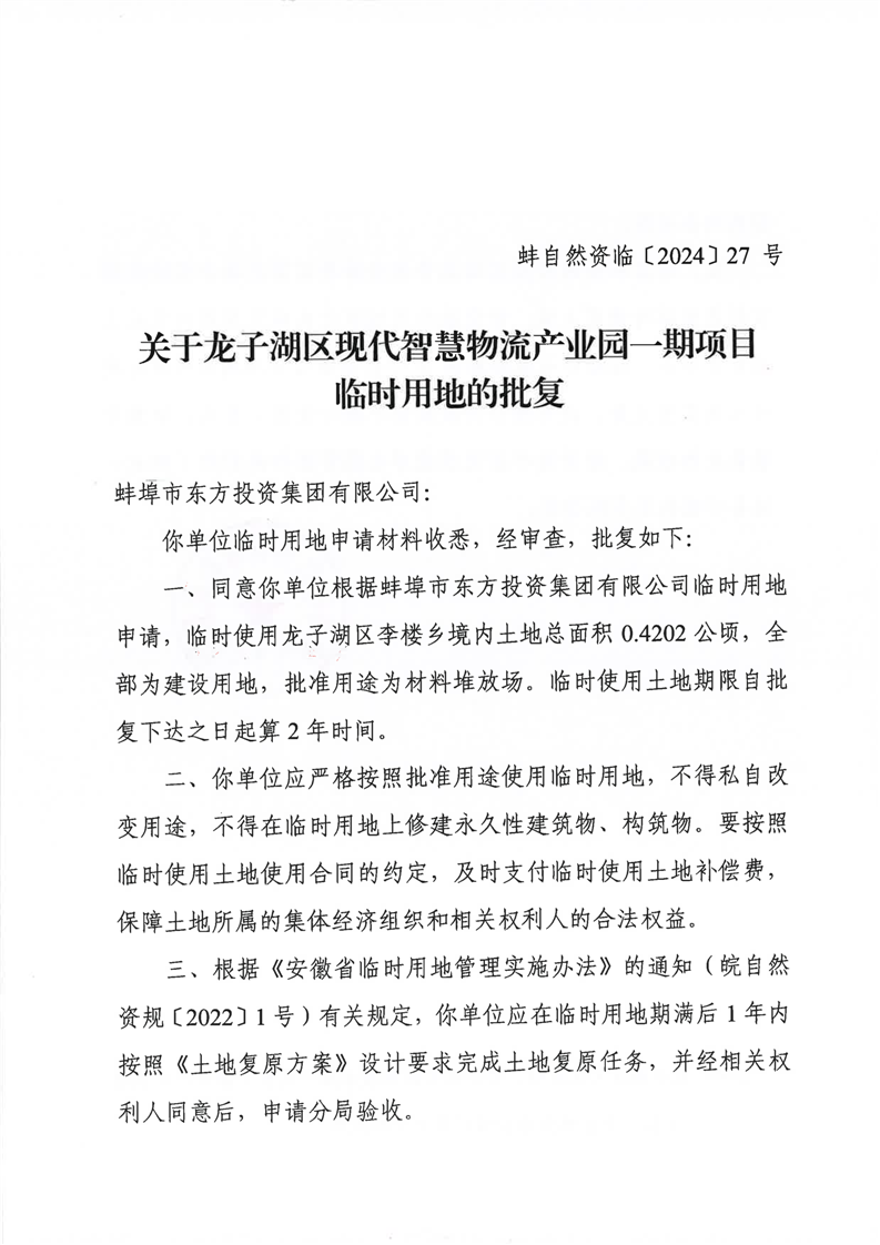 关于龙子湖区现代智慧物流产业园一期项目临时用地的批复