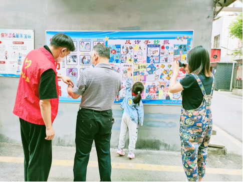 “小手拉大手”,构建反诈宣传栏。联合三十一中开展反诈宣传活动。由学生亲手制作精美的反诈知识手抄报,在小区宣传栏展览,看到孩子们一幅幅有趣生动的绘画手抄报,反诈宣传志愿者动员大家拍照转发微信群和朋友圈,通过转发集赞等方式,让更多人群了解网络诈骗的途径和方法,提醒大家不轻信陌生电话和短信、不点击不明网络链接等,将反诈安全意识深入人心,同时,倡导大家积极下载“国家反诈中心”App,提高识别防范网络电信诈骗能力。
