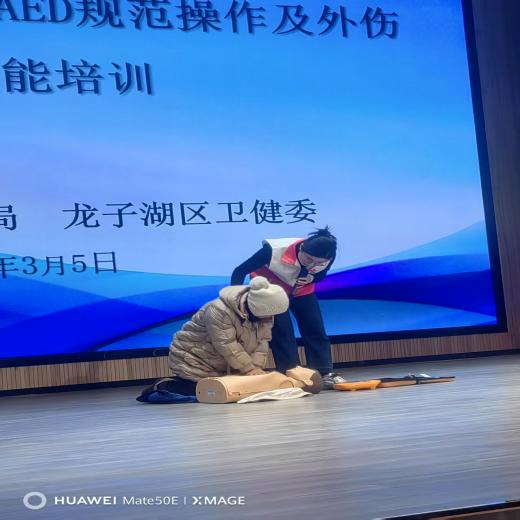 走进辖区学校,为生活老师、体育教师开展CPR、AED操作及外伤急救专项培训,邀请市红十字会专业师资,通过理论讲解、实操演示、手把手教学,详细讲解心肺复苏、除颤仪使用、止血包扎、磕碰应急处理等实用技能,有效提升教职工应急处置能力,为打造安全健康校园夯实基础。