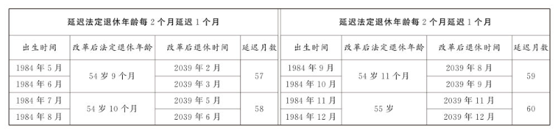 2.原法定退休年龄五十五周岁的女职工延迟法定退休年龄对照表