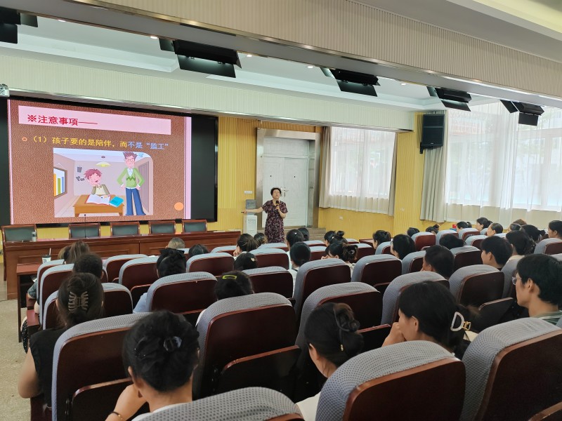 学校邀请蚌埠市中小学教师进修学校高级讲师、教育学副教授成艳珍为新生家长开展以“家校共育,陪伴成长”为主题的讲座。