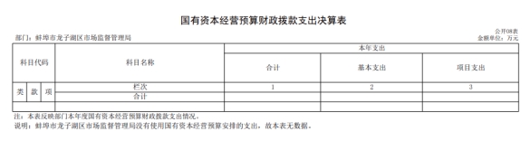 蚌埠市龙子湖区市场监督管理局2024年度没有国有资本经营预算收入,也没有使用国有资本经营预算安排的支出。