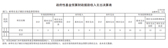 蚌埠市龙子湖区市场监督管理局2024年度没有政府性基金预算收入,也没有使用政府性基金预算安排的支出。