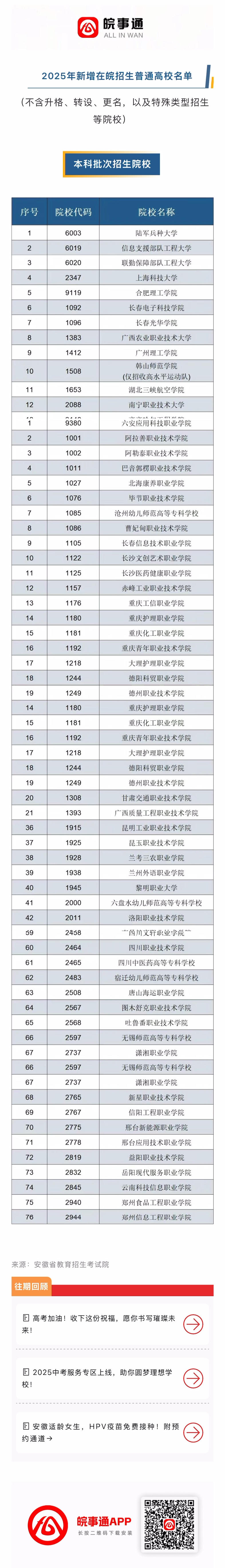 【主动回应】2025年新增在皖招生普通高校名单 |
