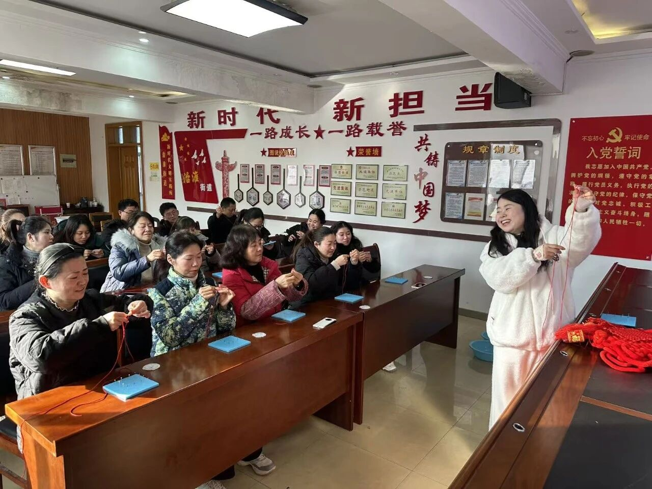 活动现场,曹氏非遗绳结传承人曹月月老师生动讲解了非遗绳结的历史传承,以及各种绳结的美好寓意,并现场示范了经典中国结的结法。居民们在老师的指导下,纷纷动手尝试,从最初的生疏到逐渐熟练,一根根普通的红绳在大家手中变幻出精美的中国结。“理论+实操+互动”的授课模式,打破了非遗技艺的专业壁垒,让居民在家门口就能跟着名师学非遗,非遗悄然飞入了寻常百姓家。